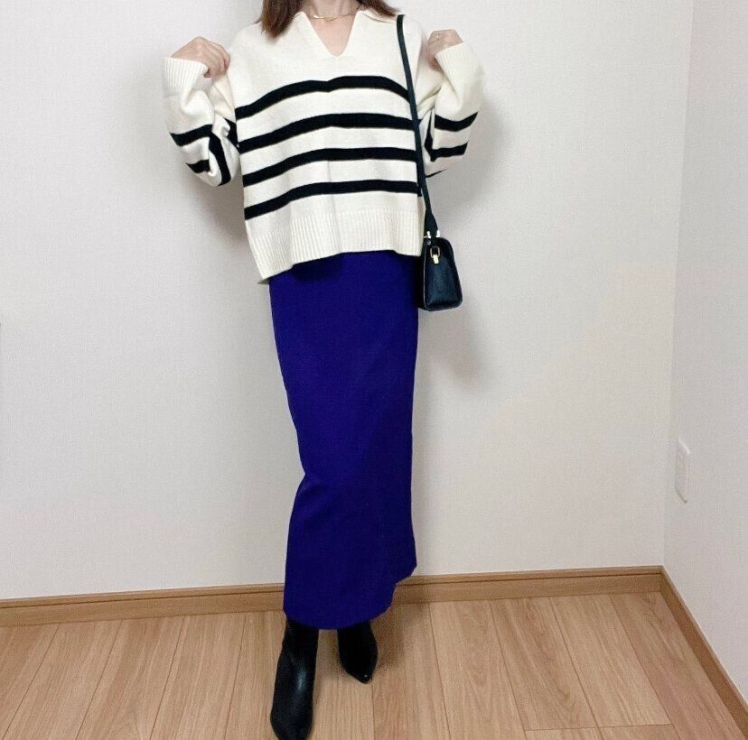 「パフィータッチオーバーサイズハイネックセーター」(2,490円)は首元も暖かいので寒くなるこれからのシーズンに大活躍すること間違いなしのニット。オーバーサイズのデザインなので、気になるお尻やお腹まわりをカバーしてくれます。タイトなボトムスを合わせてメリハリコーディネートを楽しむのもおすすめですが、あえてロング丈のスカートを合わせたおしゃれ上級者ファッションにもぜひトライしてみてほしい……!