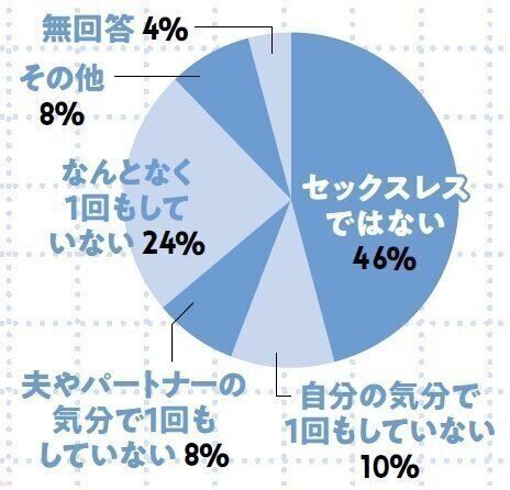 「していない」人は42%で5人に2人強。していない人の声を聞きました。「疲れを言い訳に避けていたら、いつの間にかレス13年目」(47歳) ●「家族という気持ちが強く、出来ない」(38歳) ●「子ども3人が寝た後の時間にする気力なし」(40歳) ●「子作りが終わってレスに。もう踏み出し方がわからない」(31歳)