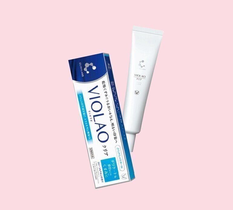 メラニンの生成を防ぐトラネキサム酸と、炎症を抑え、肌荒れを防ぐグリチルリチン酸ジカリウム配合の専用クリーム。使用感はサラッと快適。「クリニラボ VIOLAOクリア」医薬部外品(30g)¥1,518/大正製薬