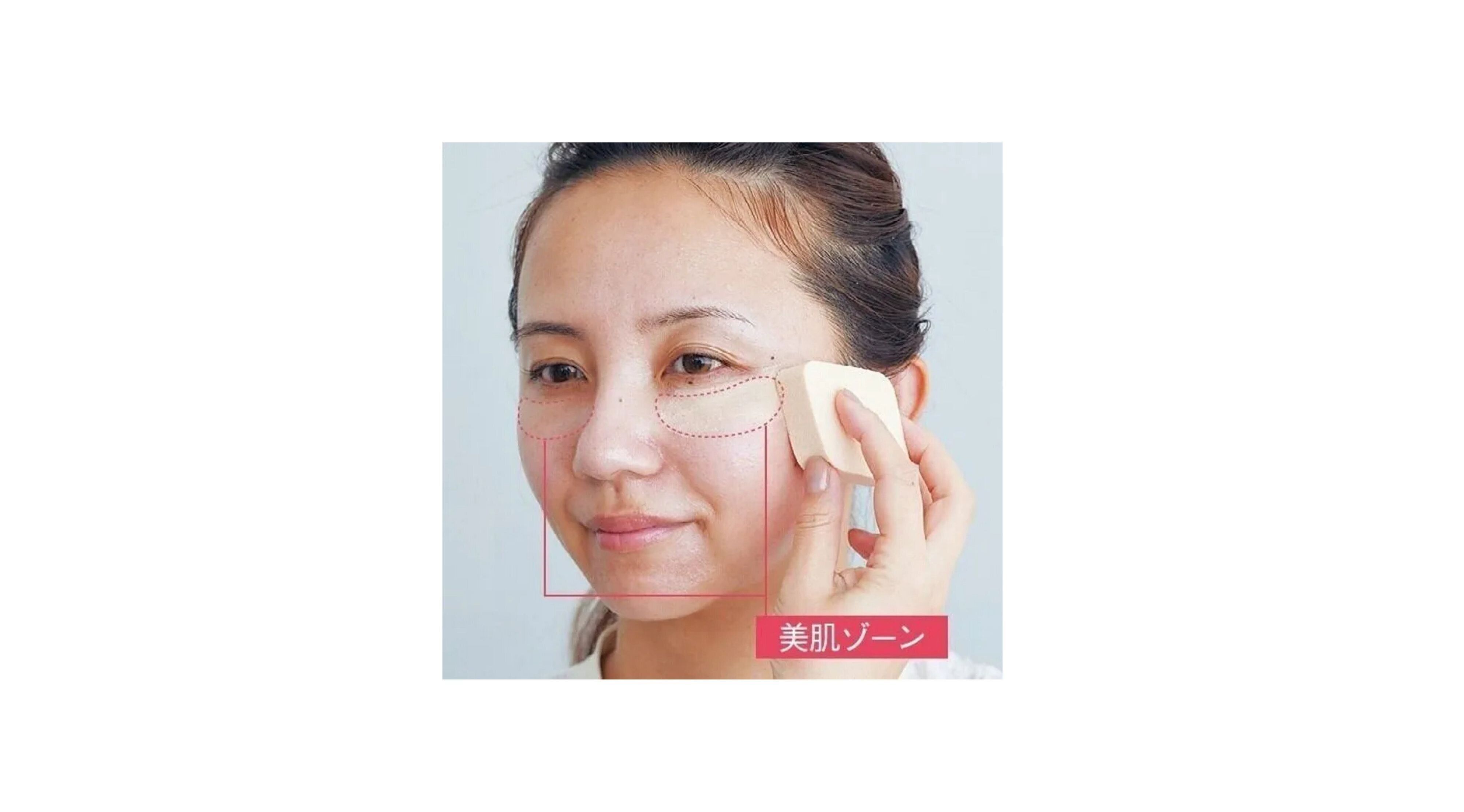 トーンアップ下地で肌の下準備ができたら、BBクリームを目の下の美肌ゾーンにのせて、スポンジでぽんぽんとタップしながらなじませる。