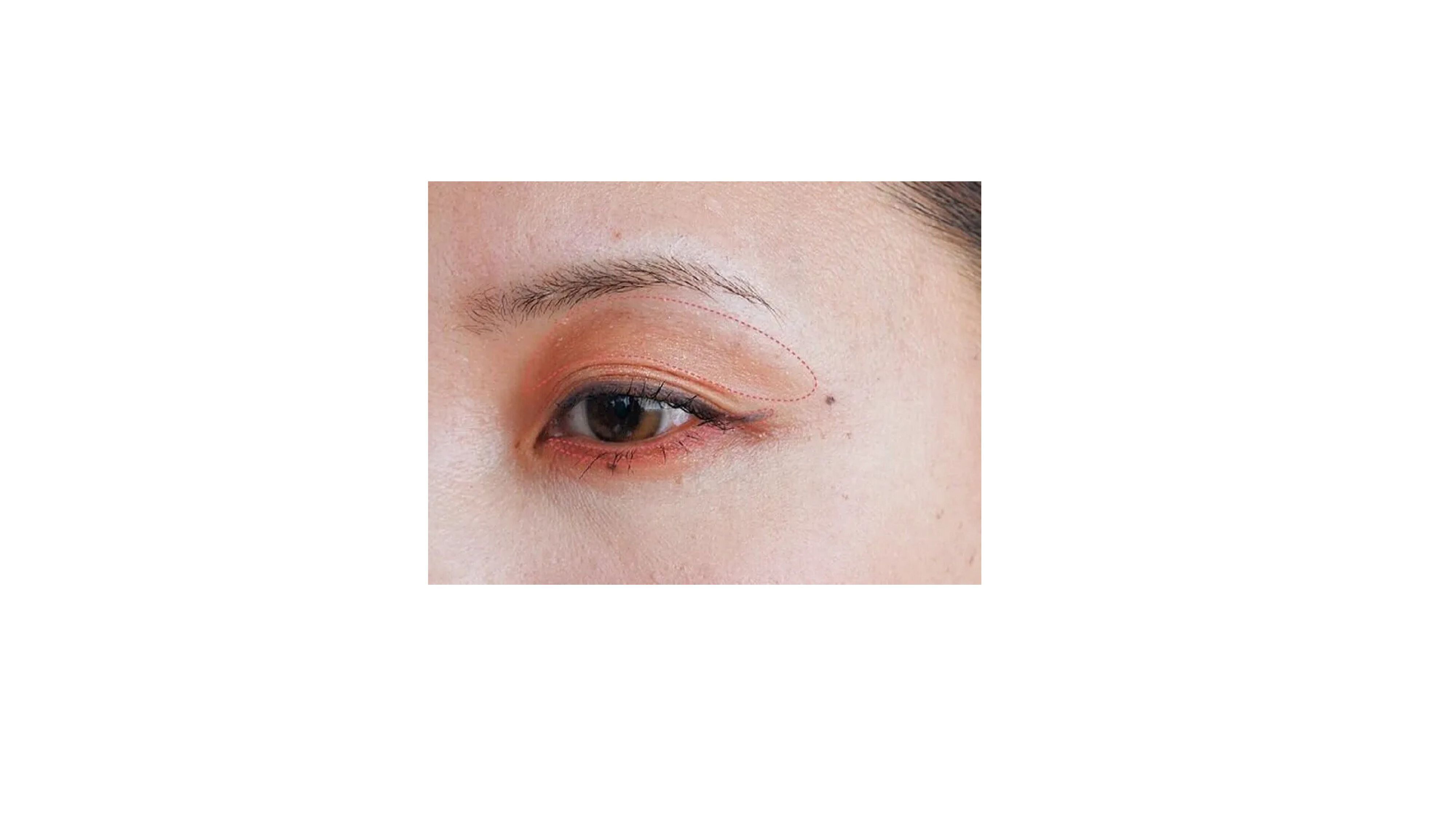 【目元】目を囲むようにピンクのシャドウを入れる