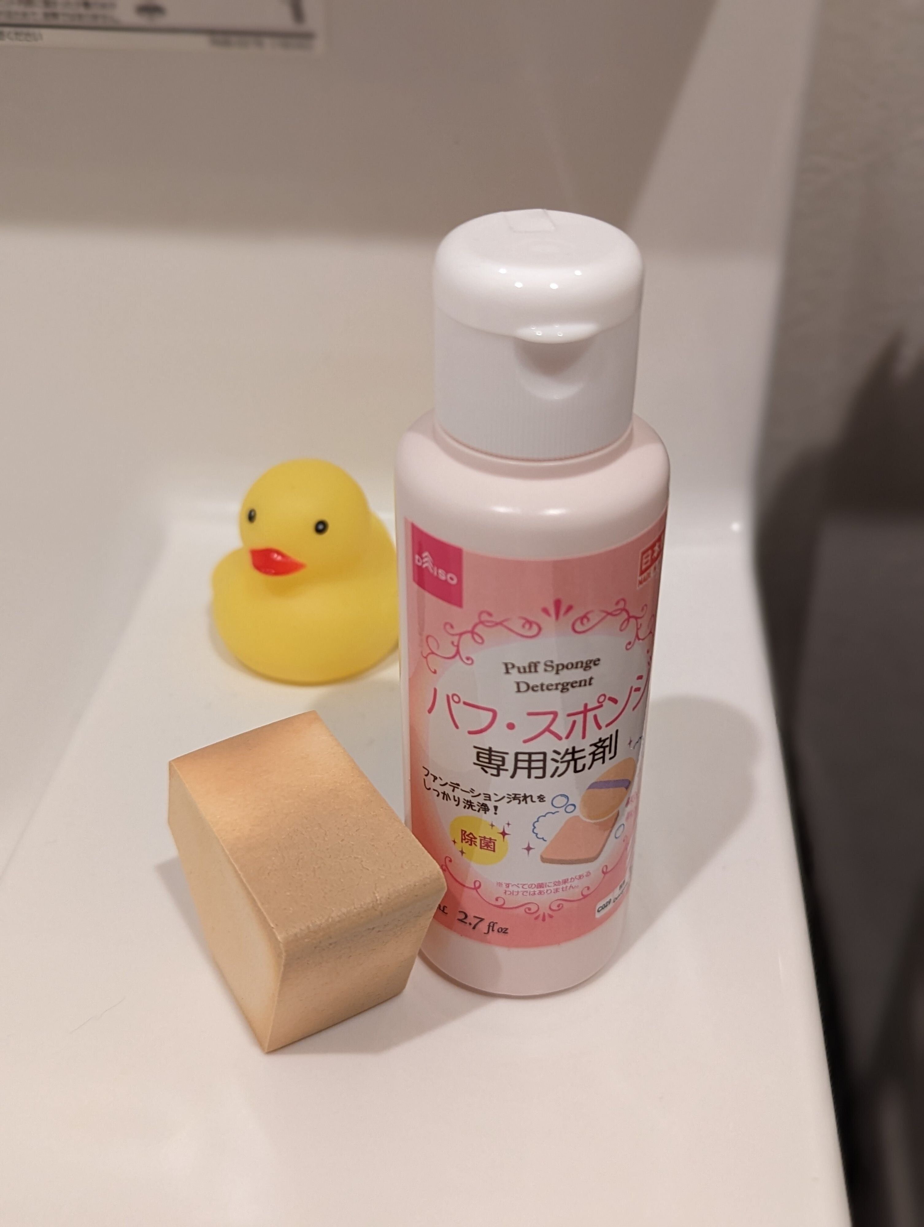 専用スポンジがあるので、なるべく毎回洗うようにとのこと。そこでBAさんが、「ダイソーのスポンジクリーナーが良いですよ!」と一言。