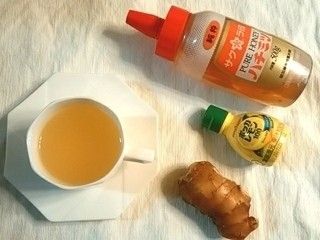 準備するものはショウガとレモン汁とはちみつ。レモン汁とはちみつを大さじ1杯とショウガ1かけの絞り汁をいれてお湯を注ぐだけの、自宅でできる簡単ジンジャーはちみつレモンです。はちみつの甘さが苦手な方にもオススメです。