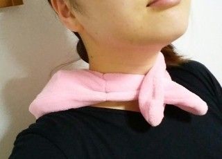 自宅にあるタオルを濡らして絞ったあと、ラップにくるんで電子レンジにチンするだけの0円蒸しタオル。これを市販で売っている首元や肩に巻くだけで身体を温めるグッズの中にいれて完成。就寝前にやるとリラックス効果もありますよ。