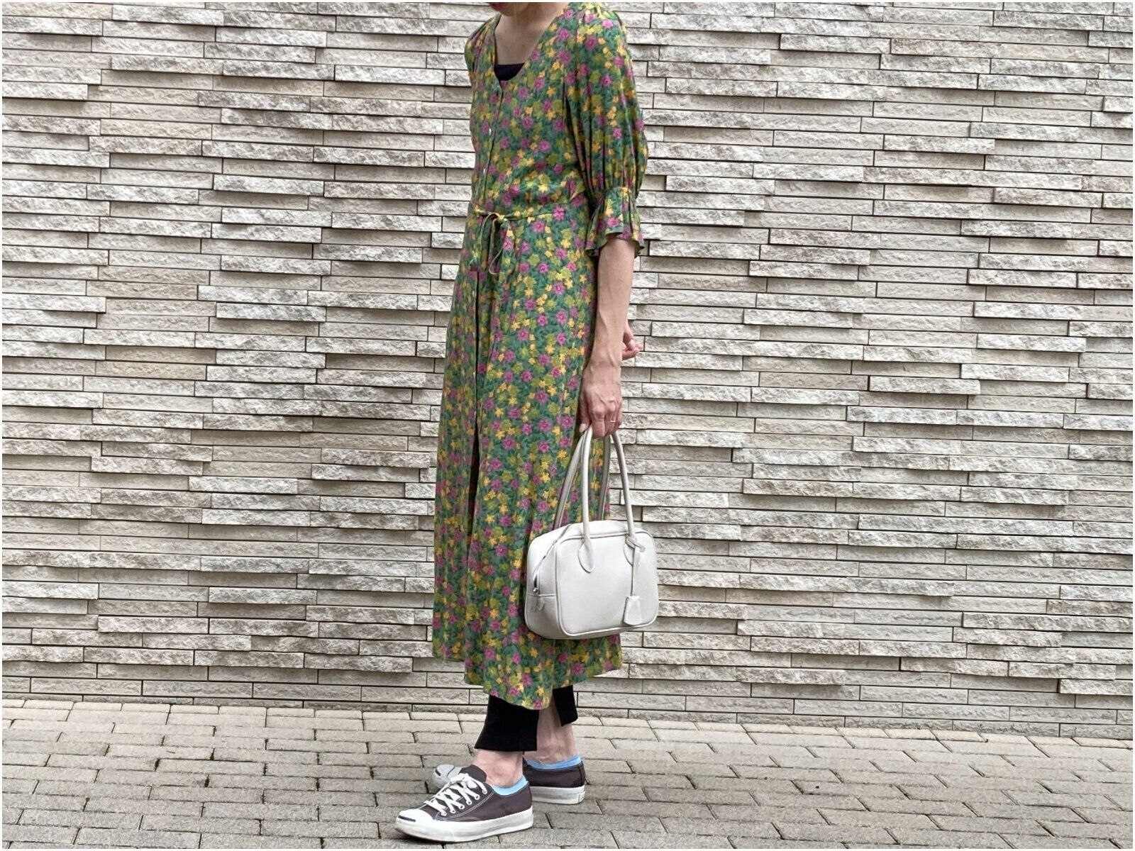 黒アイテムをインナーやレギンスなどで取り入れて、甘めのワンピースをキリリと引き締めながら着るのがマイルール。1枚でレディに着こなす柄ワンピースとは違った印象で着ることができて◎。レイヤードをしてみるなら、ストンと縦に落ち感のあるシルエットのワンピースが似合うと思っています。カジュアルなシャツワンピースとも相性バッチリですよ!