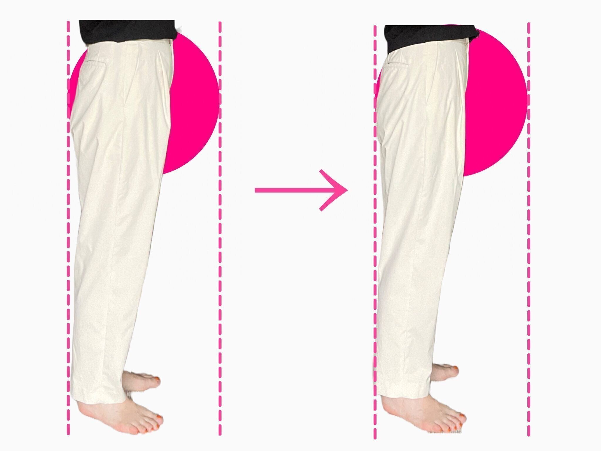 ヒップラインをピンクのラインに沿わせてみると、一目瞭然。