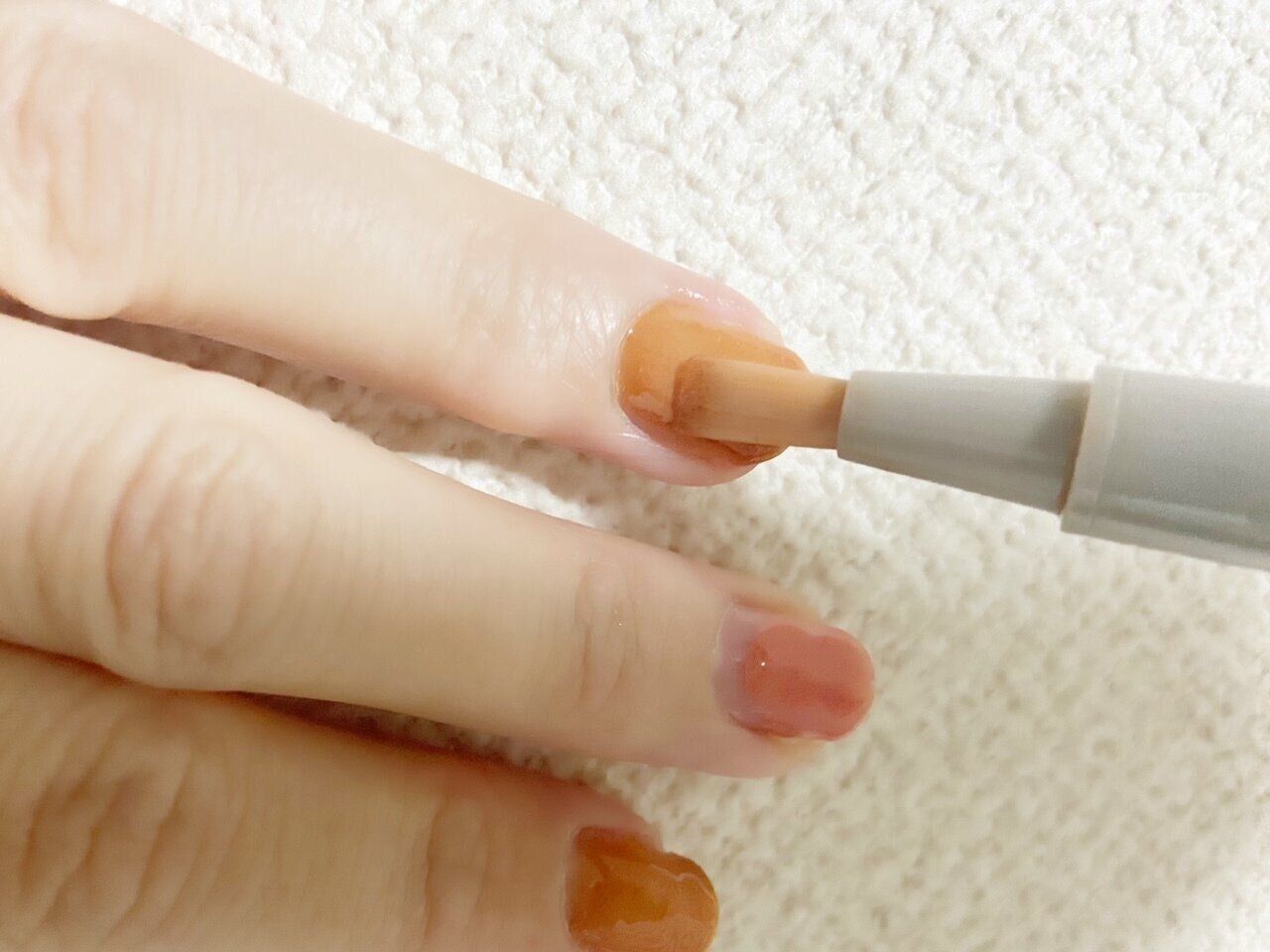 実際に筆者も利き手ではない右手(筆者は左利き)でネイルを塗ってみたのですが、筆タイプと比べてはみ出しも少なく割ときれいに、しかも短時間で爪にカラーをのせることが出来ました。