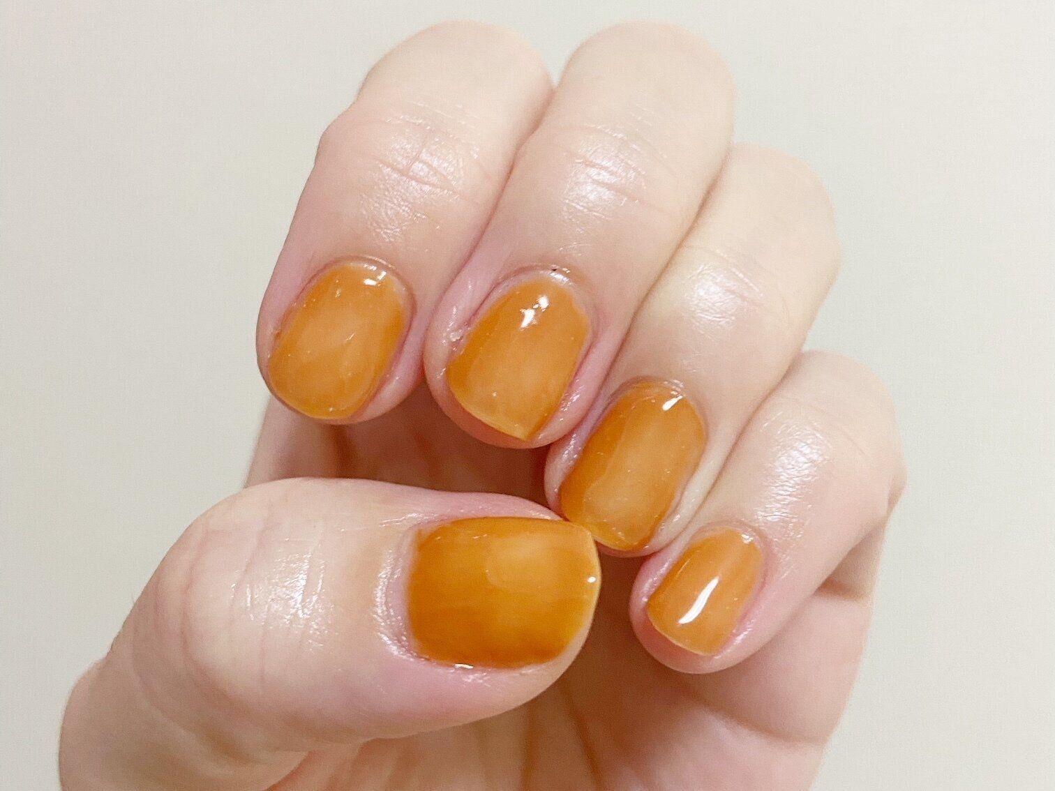 今回はオレンジ系とカーキ系のカラージェルネイルを購入しました。流行のマグネットジェルネイルも同時発売されたのですが、大人気のため発売2日目でも筆者が行った店舗では完売していました。