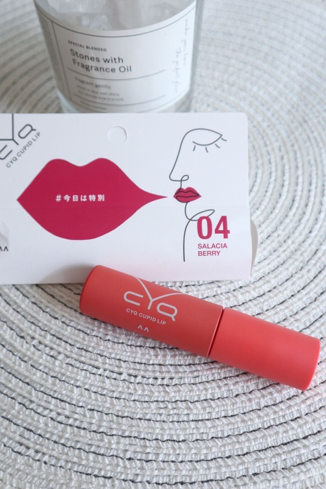 CYQのキューピットリップ。価格は1,600円。マットな質感でこちらも落ちにくいです。チークとしても使えます。