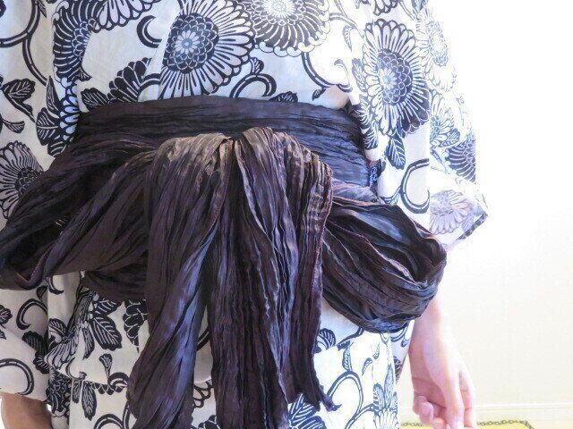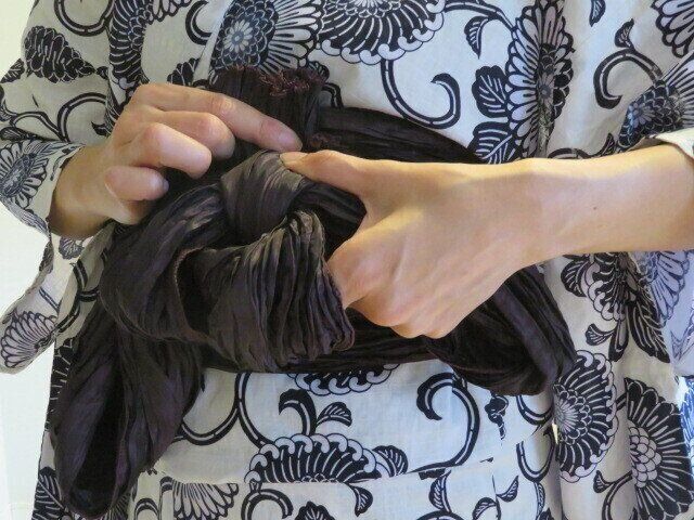 平帯が普通ですが、兵児帯(へこおび)はより簡単。くしゃくしゃしているので最初戸惑いましたが、よれを気にしないでいいのです。