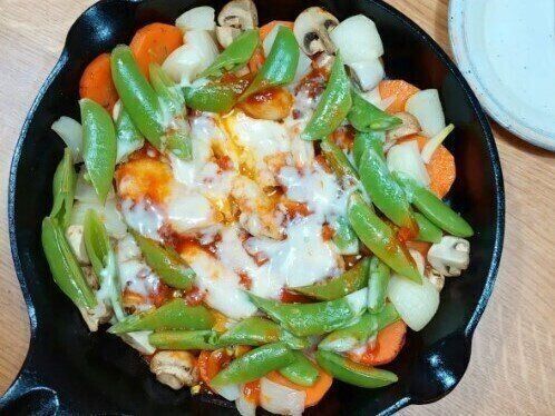 野菜の水分やチーズのおかげで、ささみがしっとりして食べやすいし、余り物の野菜でもたっぷりのせたら、栄養バランスのよいおかずになりますよ。