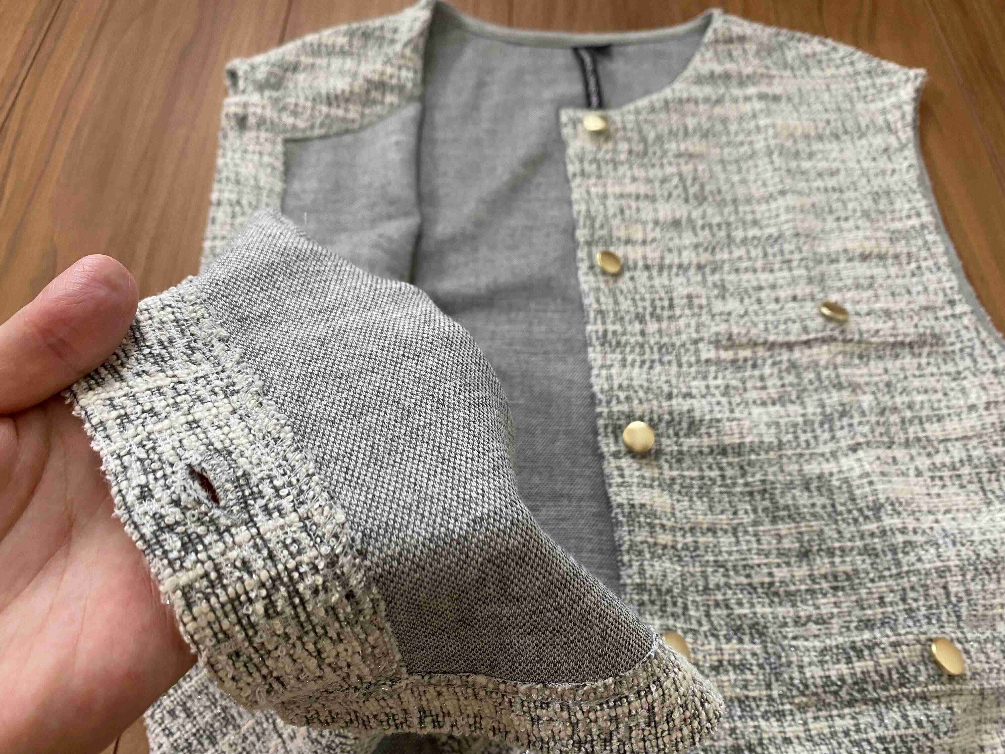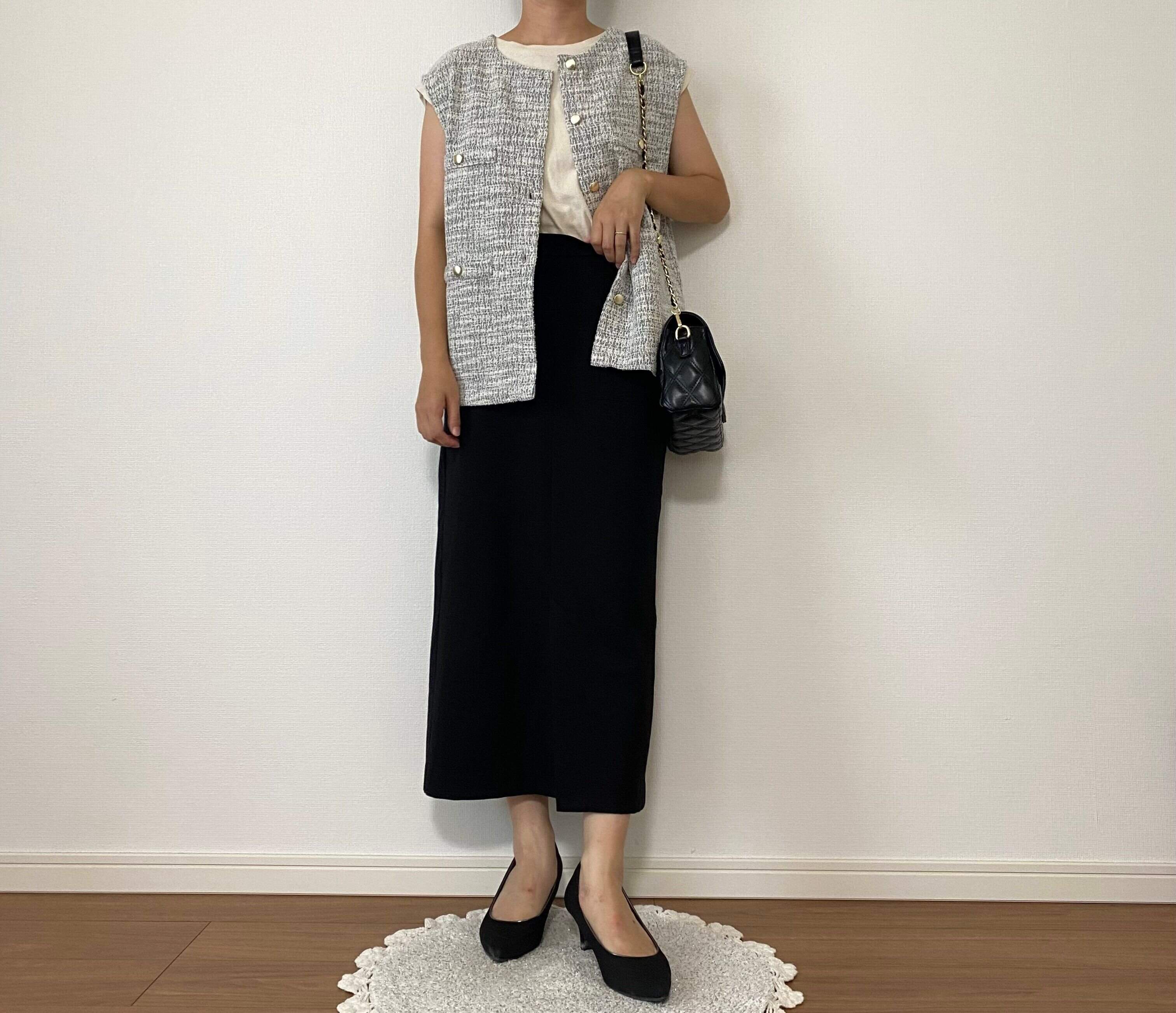 ツイード生地は厚みがあり着膨れするイメージがありましたが、こちらは薄くて柔らかい生地なので逆に体型カバーも狙えそうです。