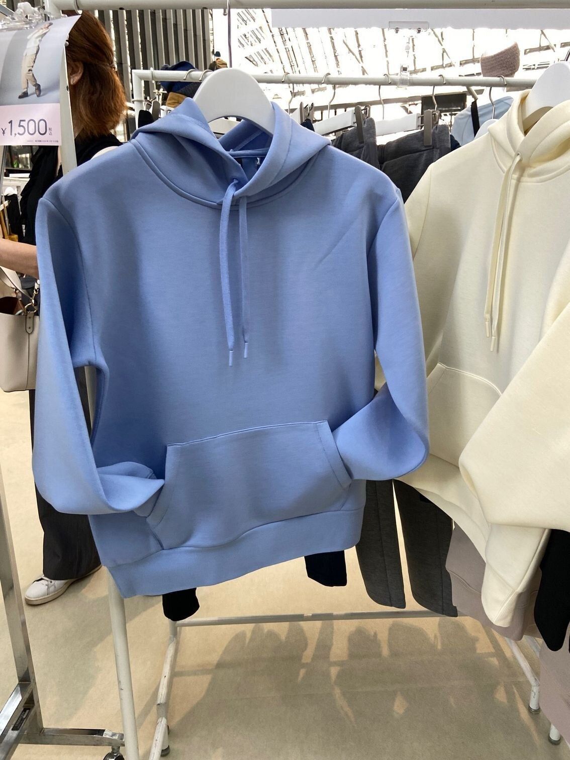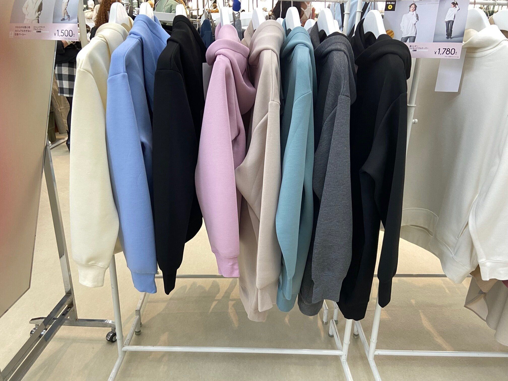 「ストレッチライト プルパーカー」の魅力は豊富なカラーバリエーション。パステル調のカラーが多く暗くなりがちな秋冬ファッションのさし色にもピッタリです。1,500円とリーズナブルな価格設定もお財布に優しい!