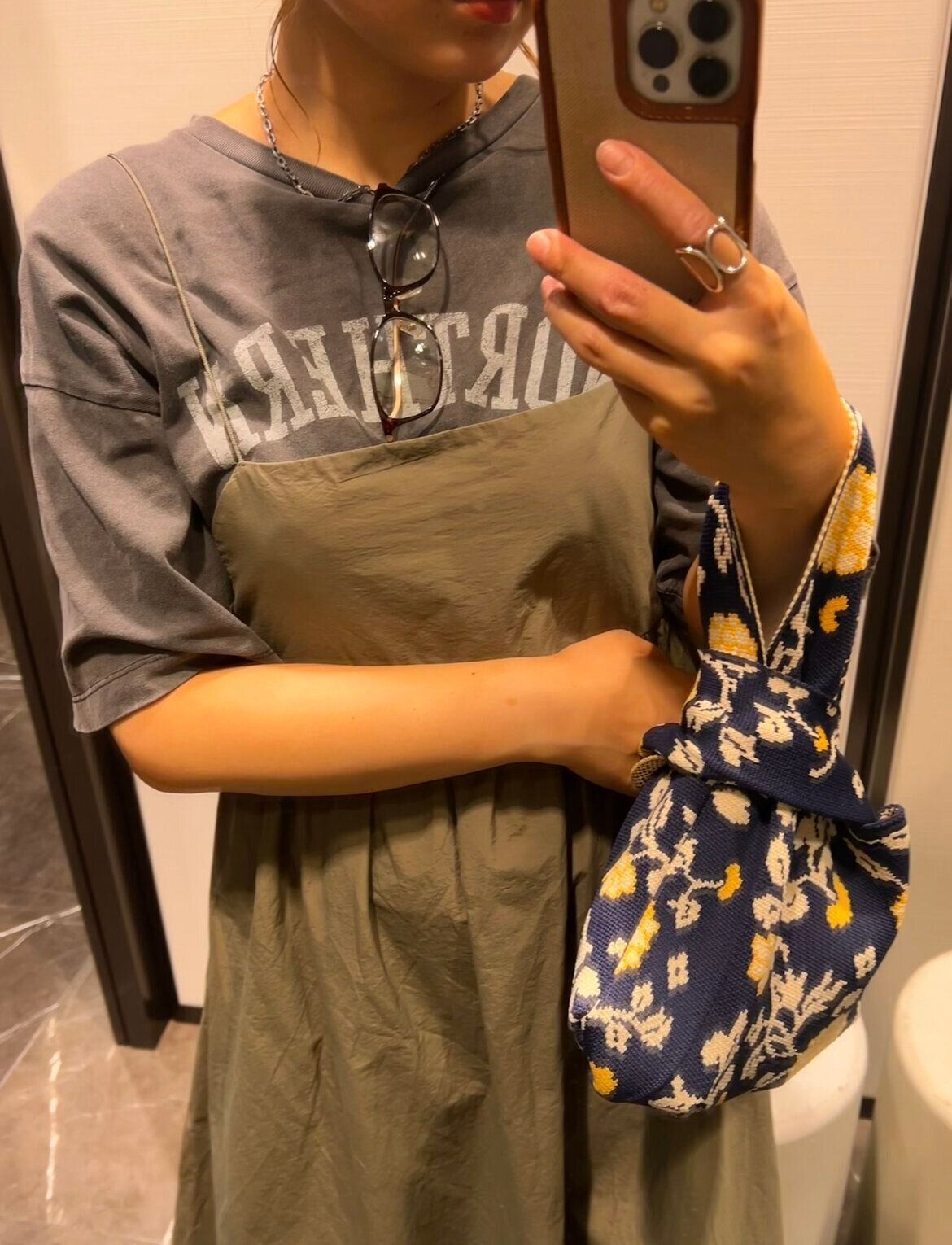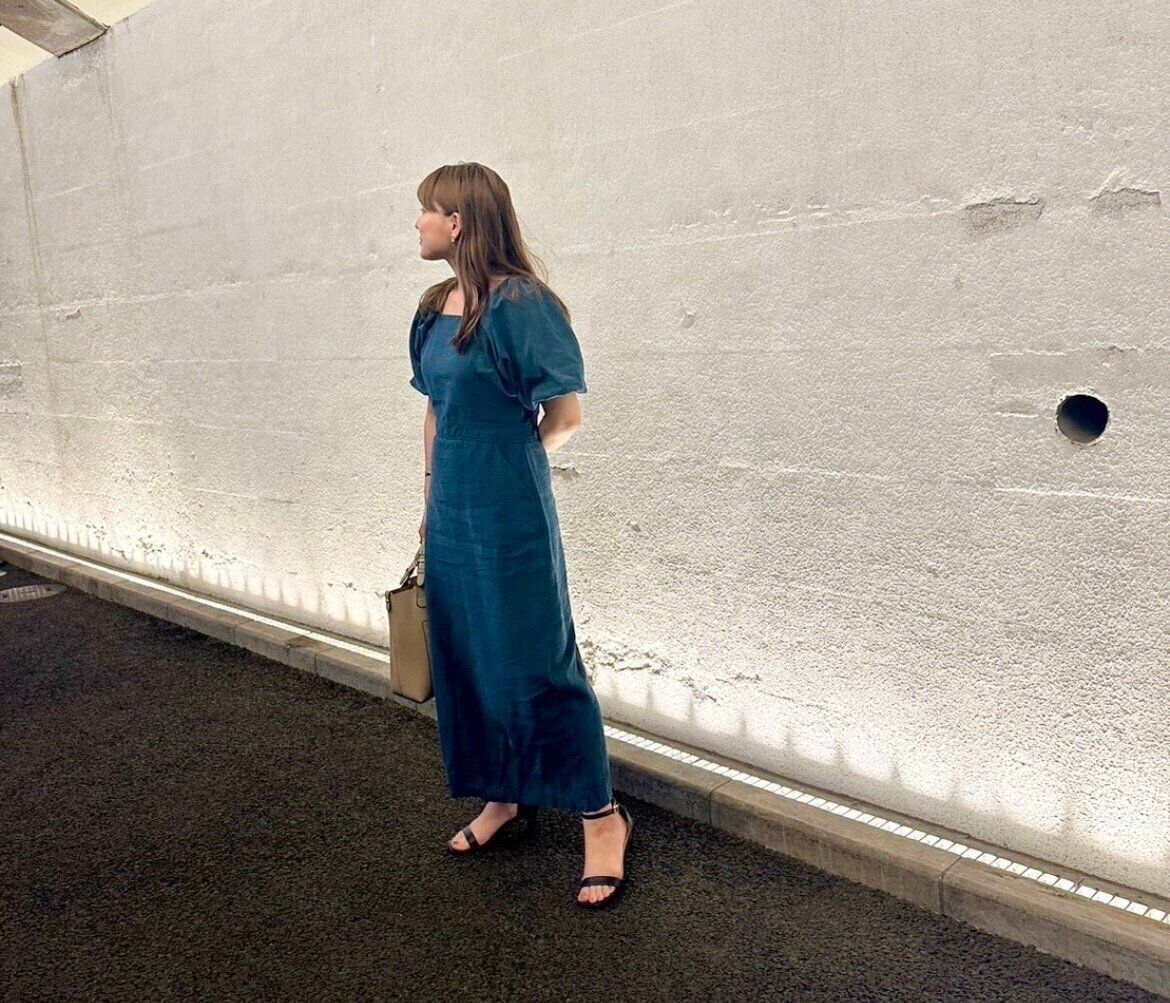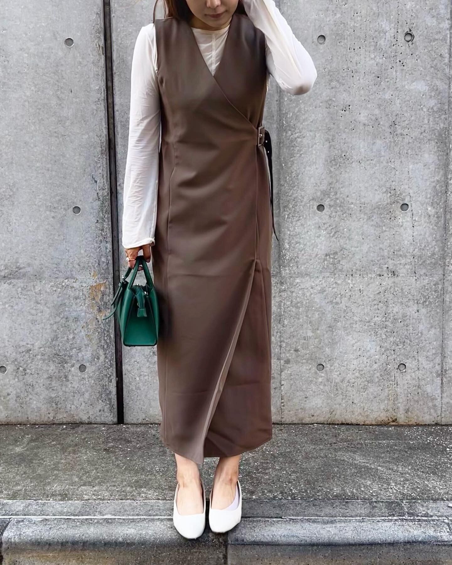 落ち着きのある色味のワンピースをサラッと一枚で。個人的なことですが体形カバーをしてくれるのでワンピース率が年々上昇しています。(笑)