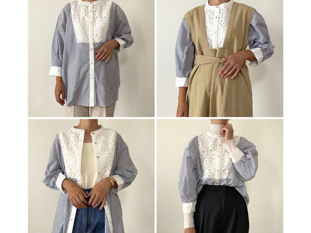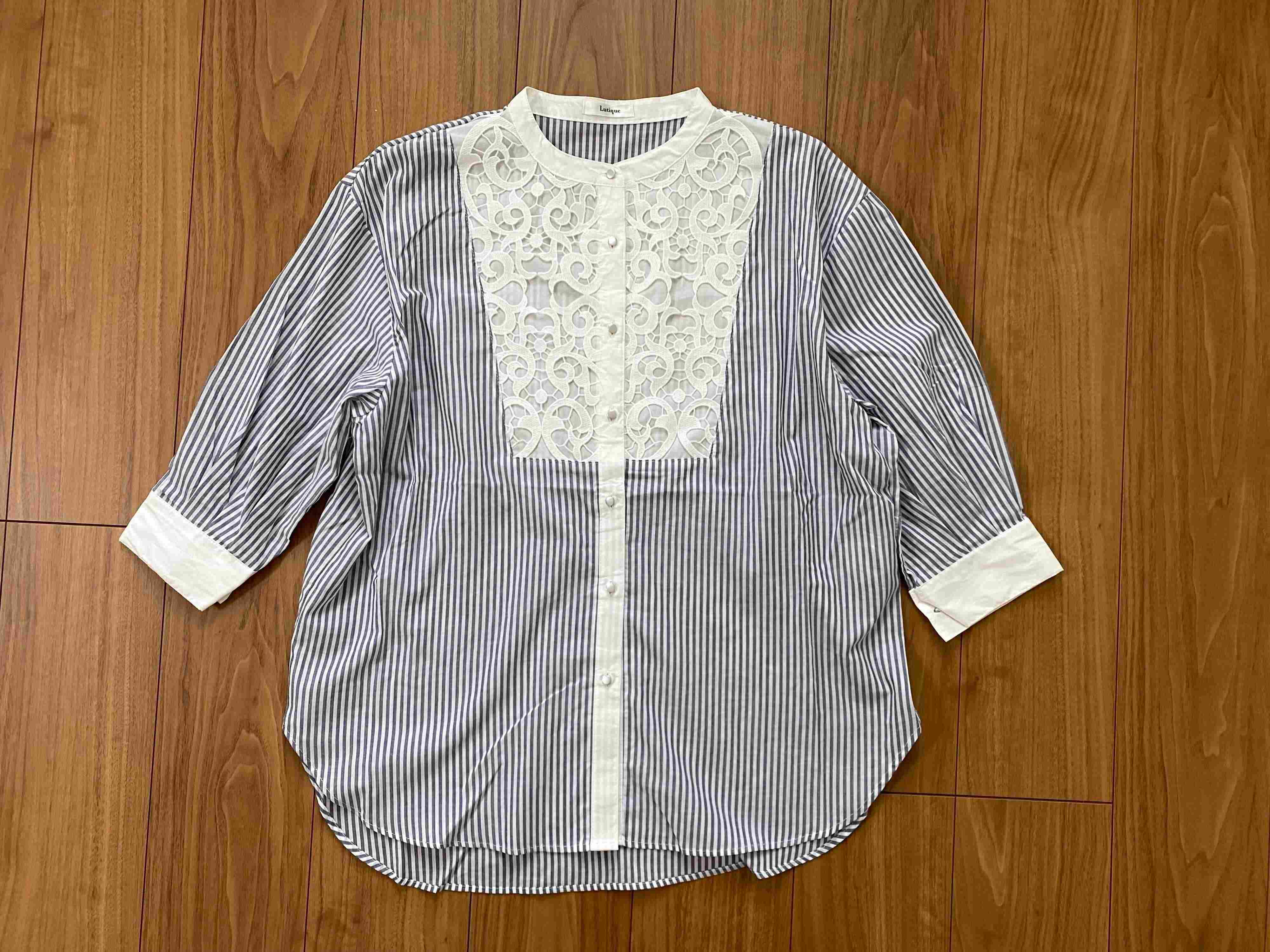 今回はプチプラなのに高見えで上品なデザイン。シャツですが透け感のある生地でまだ蒸し暑い今から着られるレースストライプシャツをご紹介します。