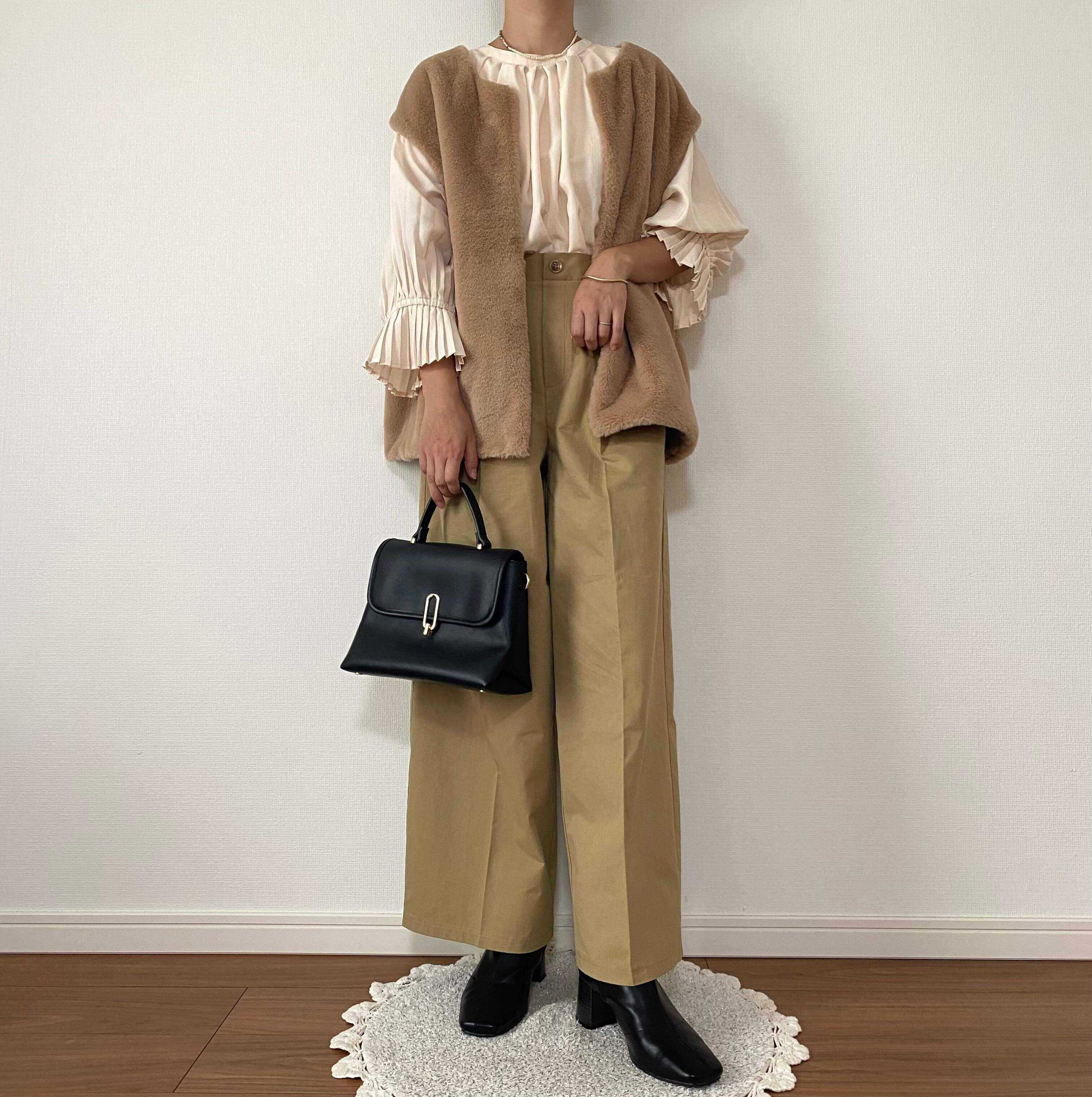 (ファーベスト、鞄、靴は過去のしまむら商品)