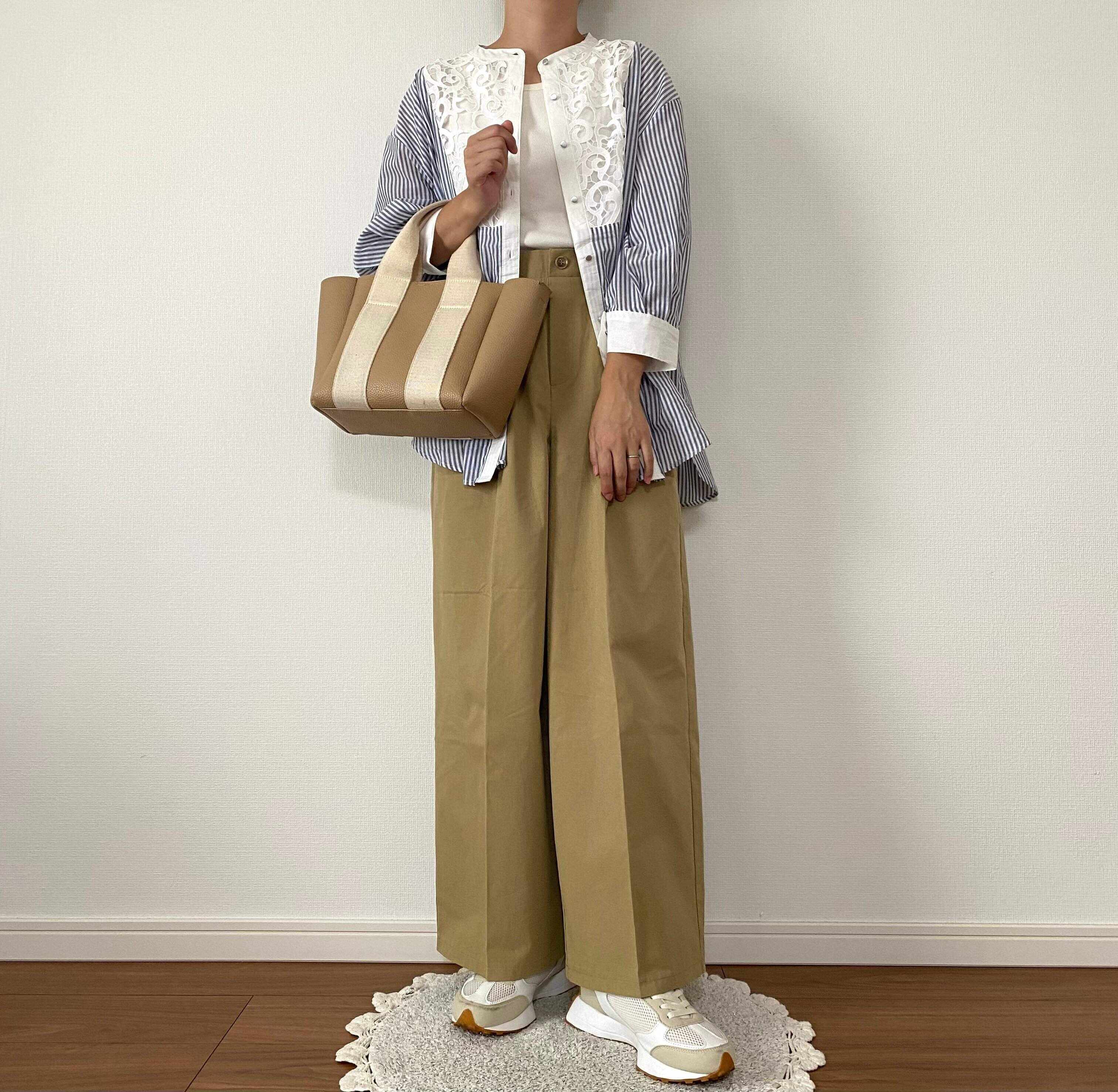 こちらはバッグから靴まで全身が最近のしまむら購入品コーデです。