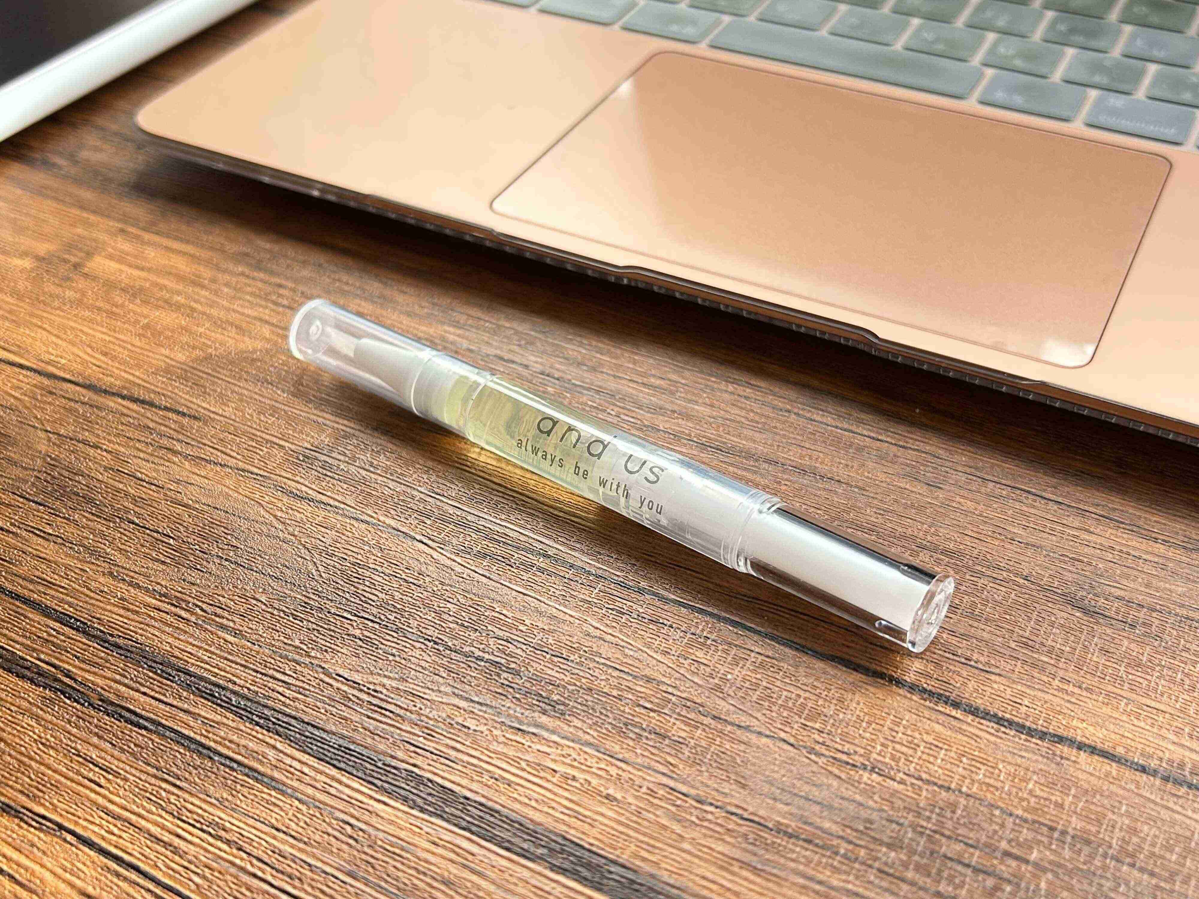 こちらが3COINSで見つけた、and usのネイルオイルです。