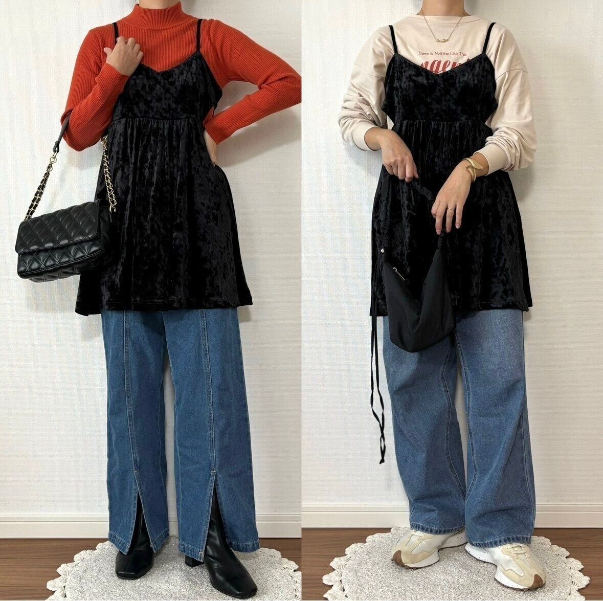 難易度の高そうなベロア素材でもブラックならコーディネートに馴染みやすく使い勝手抜群!