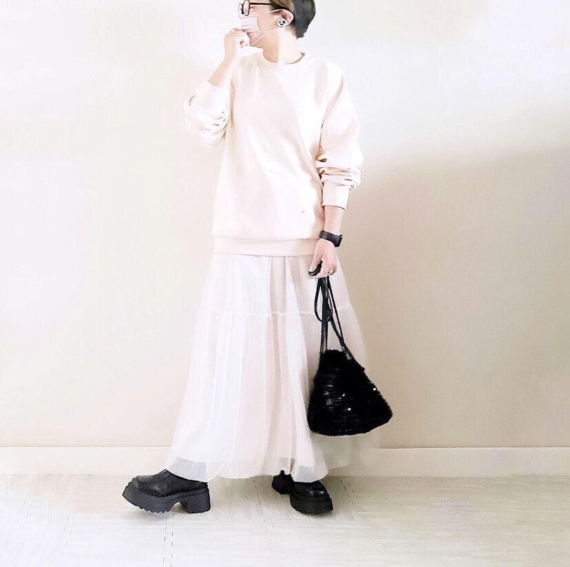 カジュアルなスタイルにチュールスカートを取り入れたいならスウェットがマスト。ガーリーな印象のチュールスカートが苦手な人でもチャレンジしやすいおすすめコーディネート!