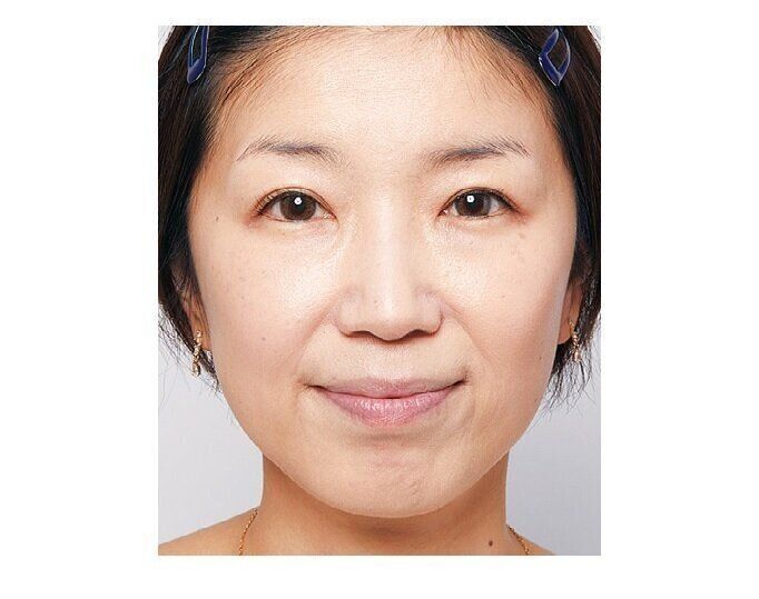スポンジで細かくポンポンたたきこむように全顔にのせただけ。「明るくなめらかな肌になった気がします」(井ノ浦さん)。