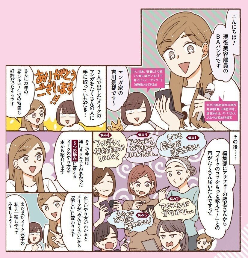 メイク迷子のマンガ家が、友達の現役美容部員にメイクのコツを全部聞いた!大ヒット本を放った名コンビが『サンキュ!』に再び降臨。メイク迷子のアラフォー『サンキュ!』読者から募った悩み※を、どこよりもわかりやすく解決ッ。