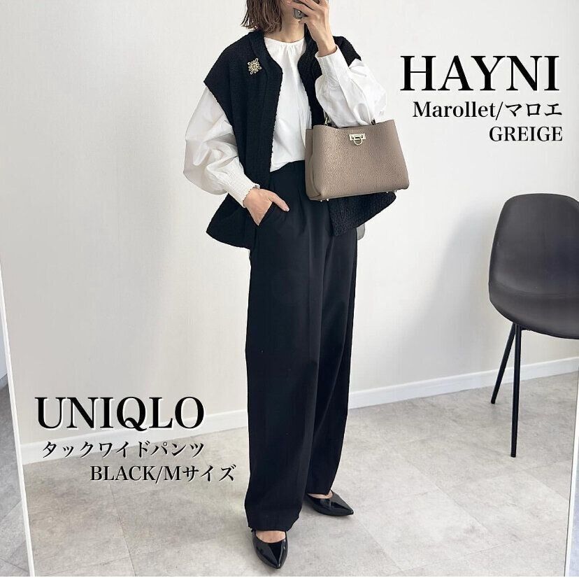 ユニクロのタックワイドパンツもオケージョンファッションにおすすめ。ワイドパンツはスタイリッシュなオケージョンファッションが完成するので、おしゃれなママの印象を与えてくれます。ベストにコサージュではなくブローチをプラスすればより洗練されたコーディネートに仕上がります。