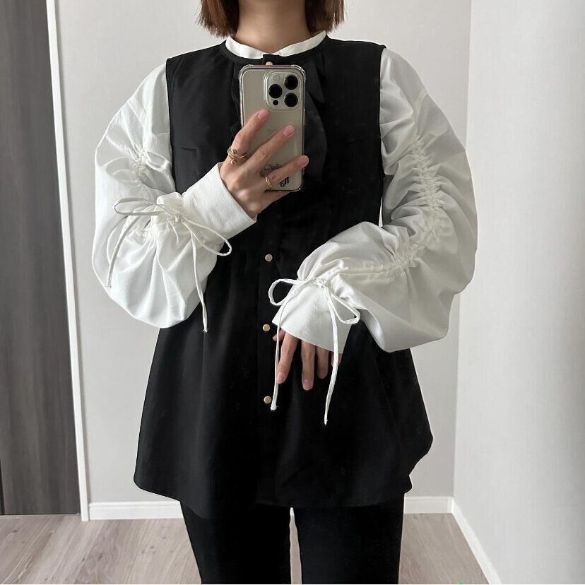 クシュっとしたデザインとリボンがかわいいブラウスはアベイルで販売されているブラウス。個性的なデザインでもコーディネート全体のカラーをモノトーンでまとめることで、きちんと感のある印象になりオケージョンファッションとしても◎。オケージョンファッションにも遊びをプラスした上級者コーディネートもプチプラならチャレンジしやすいですね。