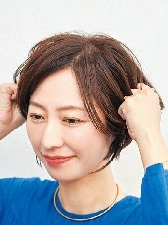 前髪の上部分がふわっとすると、若々しい印象に。手ぐしでジグザグに動かしながら後方から風をあてる。