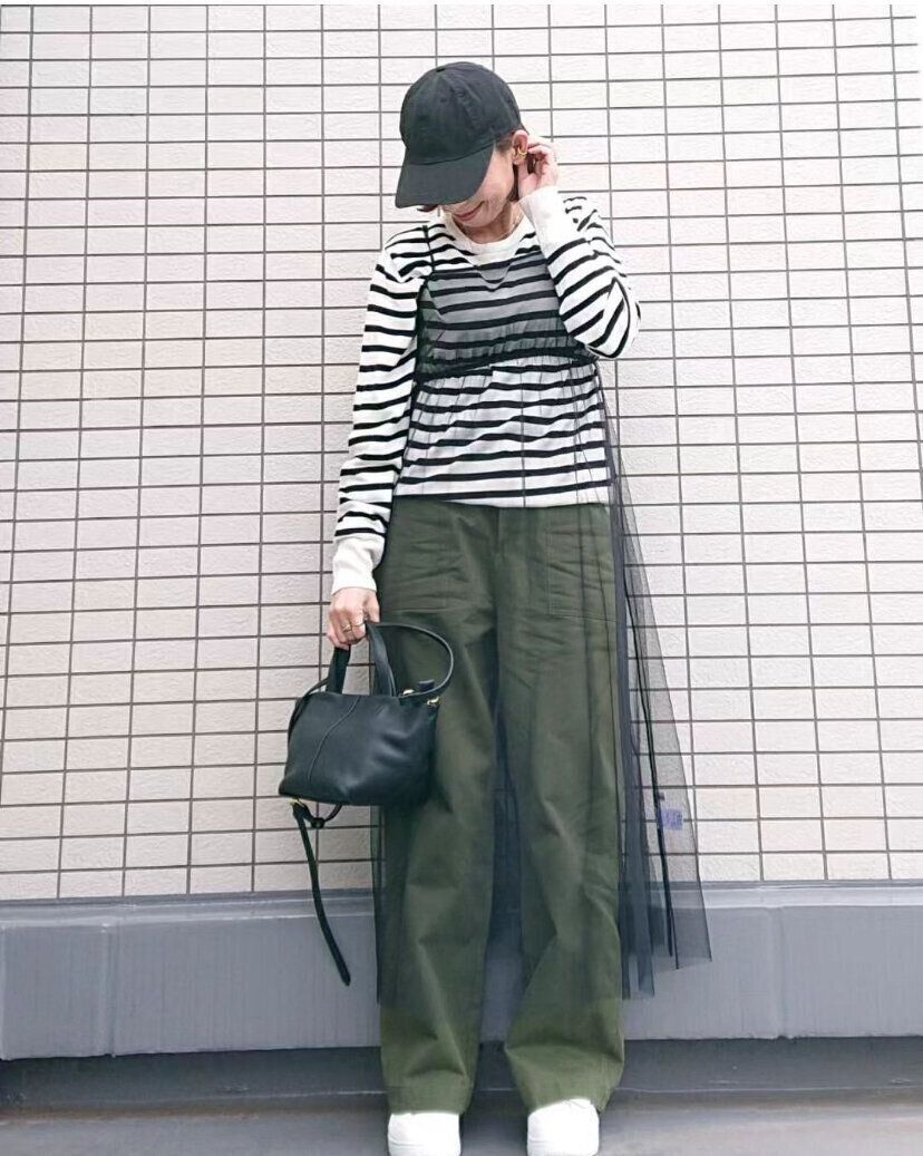なるべくクローゼットのお洋服を増やさずに、でもおしゃれな印象はきっちり与えてくれるワンピースは1枚持っておけば重宝する事間違いなし。普段着っぽく見えがちなボーダーアイテムもチュールワンピースを合わせる事で、おしゃれなお出かけアイテムに格上げできちゃう!