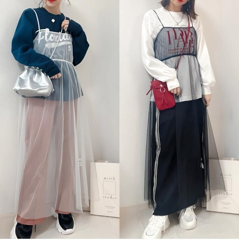 見つけたらラッキー!ファッションインフルエンサーがしまむらの神アイテムとこぞって購入しているチュールアイテムが『ドッキングキャミOP』(2,420円)。