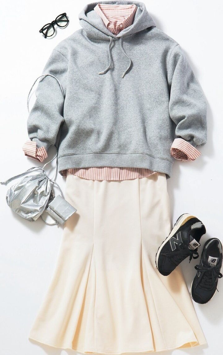 カジュアルなパーカの中に仕込んでこなれコーデに格上げ