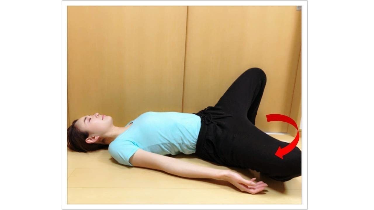 続いて膝を内側に倒しゆっくり倒し、ゆっくりと戻します。