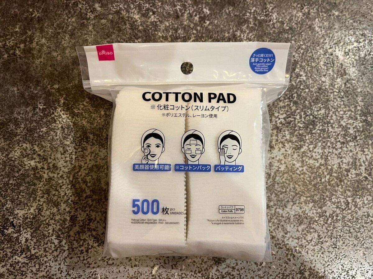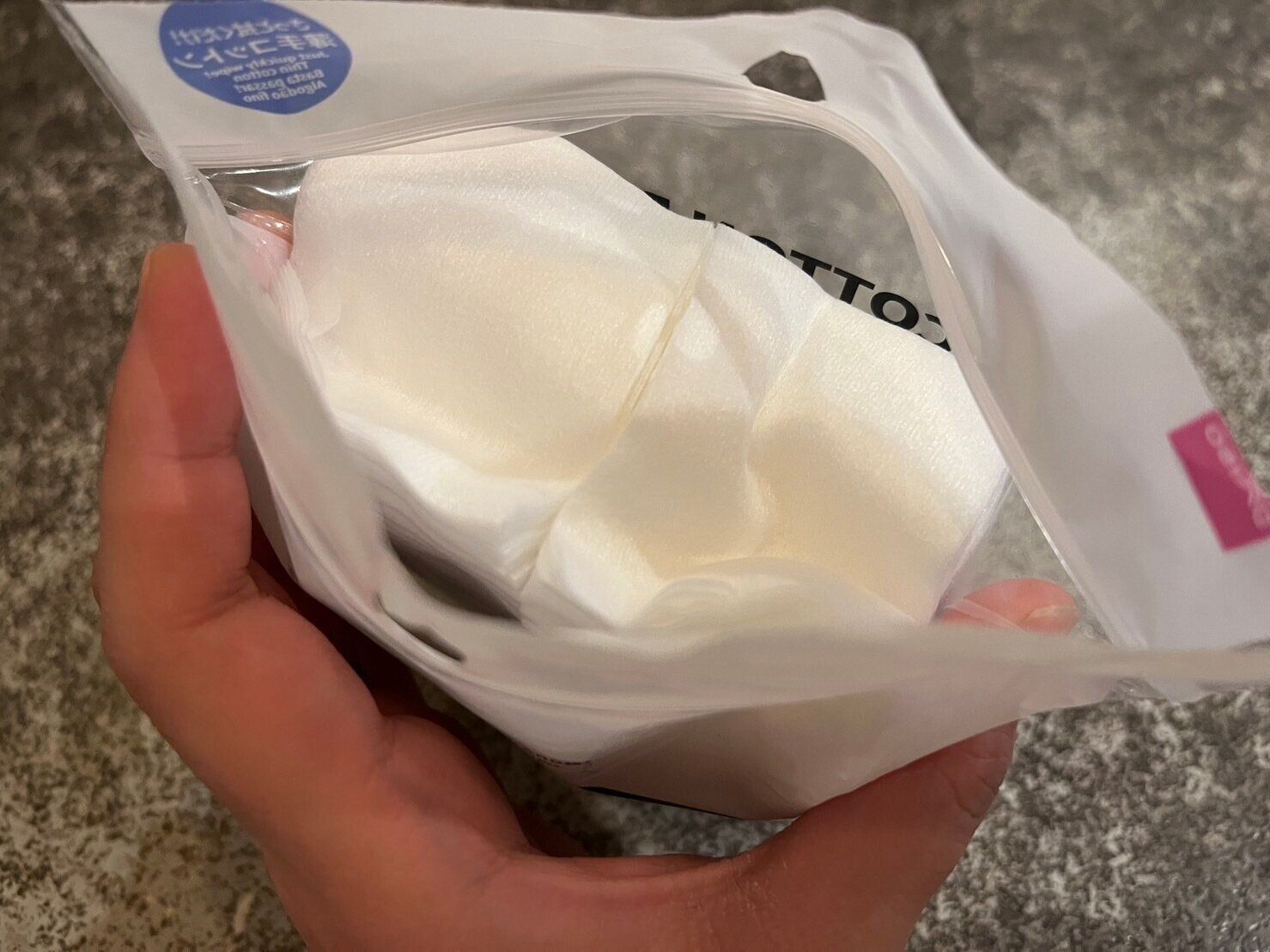 袋のまま省スペースで保管でき、好きな厚みで使用できて無駄のないダイソーのコットンで日々の小さな「もったいない!」がひとつ減りました。