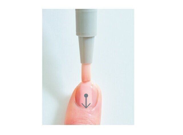爪上部の一部分にだけ、Aをちょんと塗り、UVライトを当てる。基本的に重ね塗りはせず、水彩画のような淡い色味でOK。
