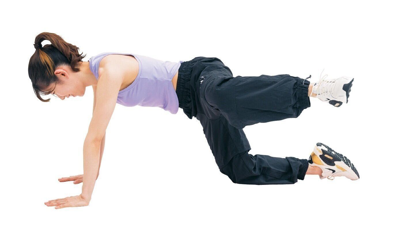 お尻やせ、ヒップアップが叶うトレーニング。足を動かすときに、お腹に力を入れるとお腹も引き締まります。