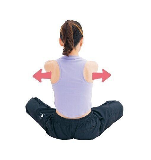 肩甲骨の間をほぐすことで血流がよくなり、代謝もアップ!息を止めずに自然に呼吸しながら行いましょう。