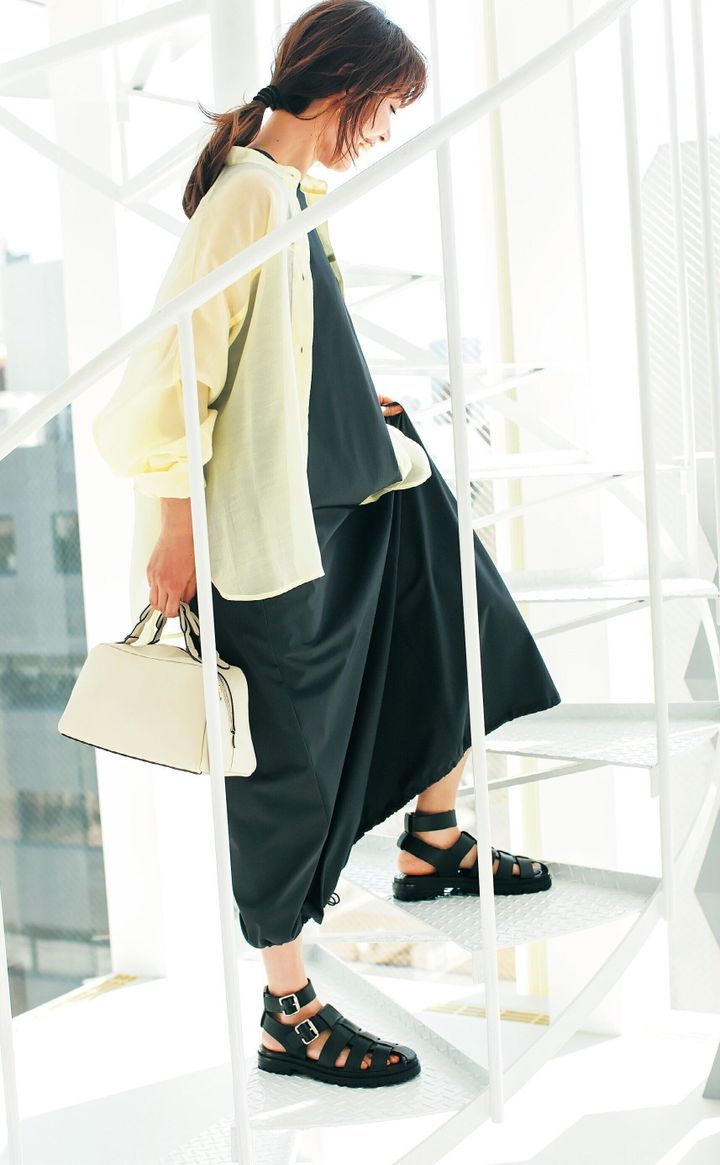 リラックス感のあるコーデはトレンドのサンダルで脱・普段着。
