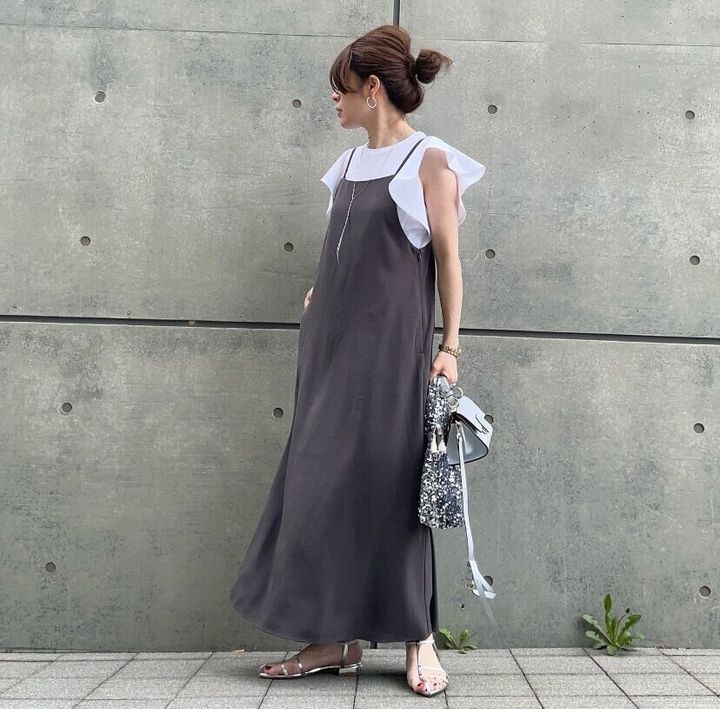 同じキャミワンピースも「ラッフルスリーブT」のカラーが違うだけで印象が変わります。