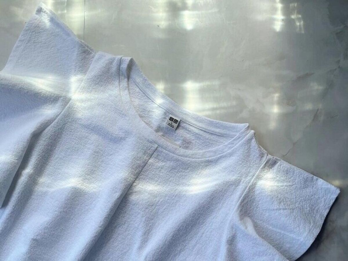 Tシャツのように取り扱いが簡単だけどカジュアル過ぎないと人気のユニクロ「ラッフルスリーブT」が早くも990円にプライスダウン!