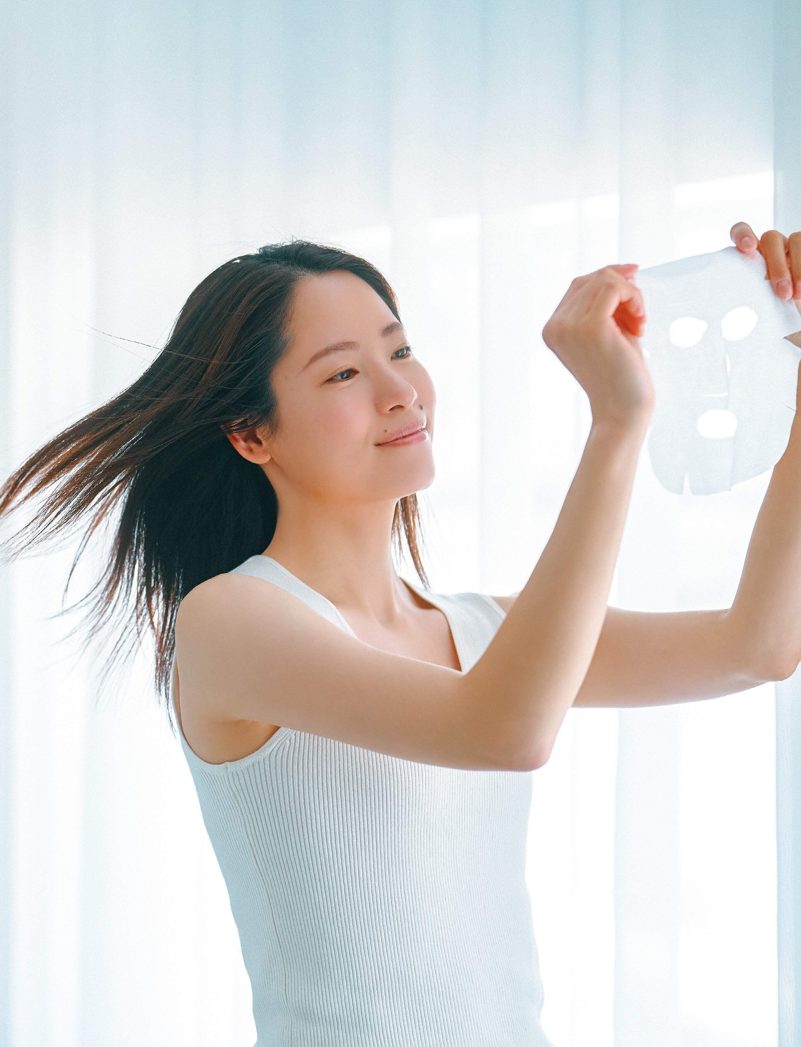 「乾燥を感じない夏は、スキンケアが雑になりがち。でも汗と共に水分が流出し、表面は潤って見えても、内側はカサカサのインナードライの人が多いんです」と髙瀬さん。だからこそ、肌への浸透率が高いシートマスクで補水・保湿するのが重要なのだとか。「水分含有量が上がれば、キメの細かいふっくら肌に。乾燥によるたるみも防げるので、老け顔予防にもなりますよ」。