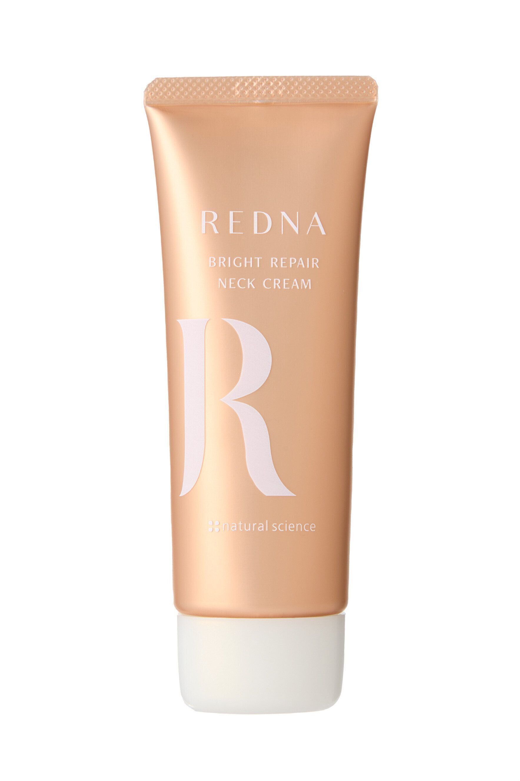 顔と同じく、紫外線や乾燥といった外的ストレスにさらされている首は、シミやくすみも気になるところ。「レドナ ブライトリペアネッククリーム」は、くすみクリア成分として、話題のナイアシンアミドや水溶性ビタミンC誘導体を配合。紫外線ダメージを防ぐ抗酸化成分も配合しています。透明感を高めることが期待されるコメ発酵液や血行促進効果のあるビタミンEもバランスよく配合されていて頼もしい限り。さらには、ブライトアップパウダーが入っているから、塗ると瞬時に肌がトーンアップしてシワが目立たない首元に整うからうれしいですね。