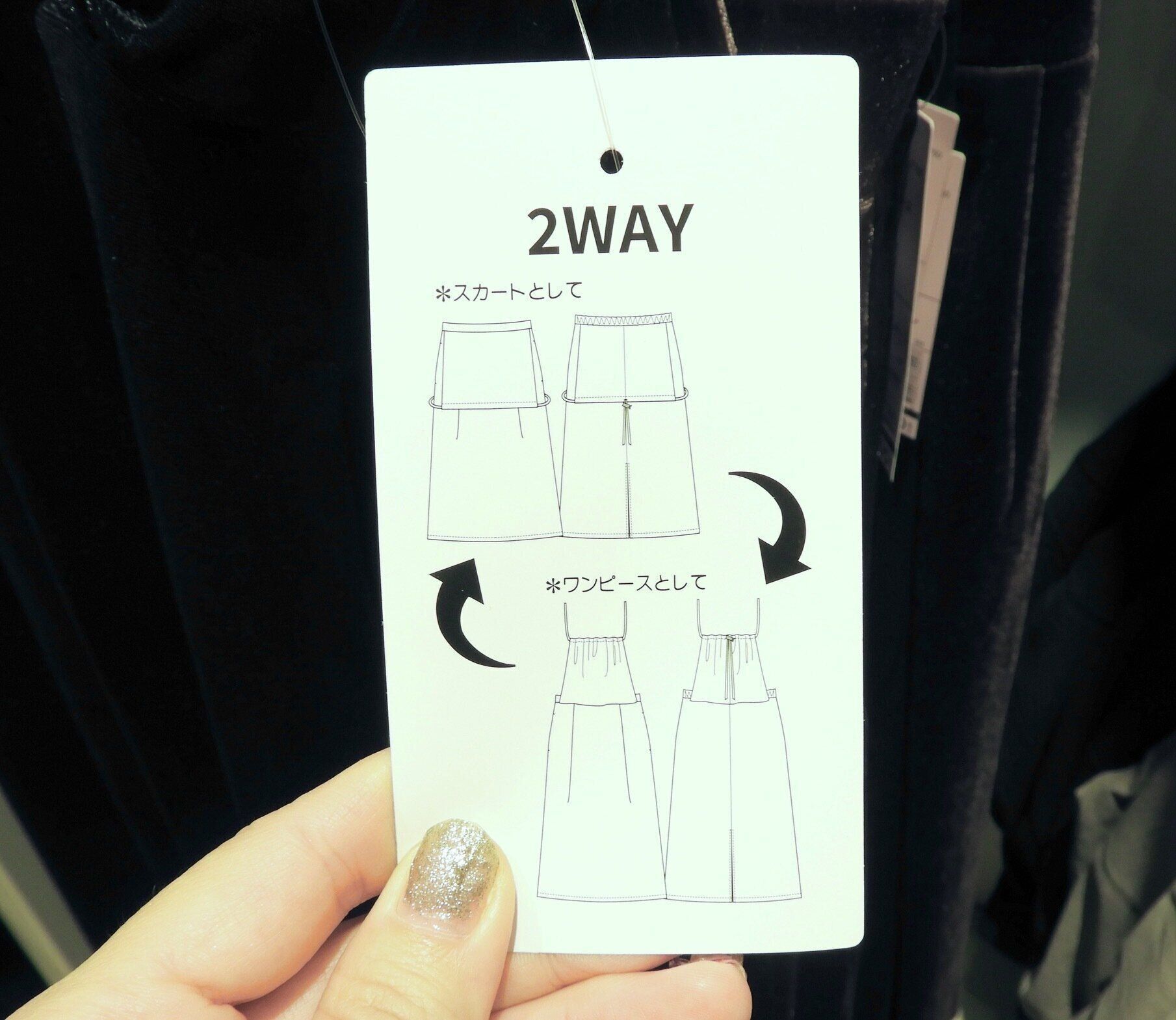 キャミワンピースとしてだけでなく、ベロアスカートとしても着用できる2WAY仕様。1枚でまったく違う着こなしを楽しむことができるので、コーディネートの幅が広がります。