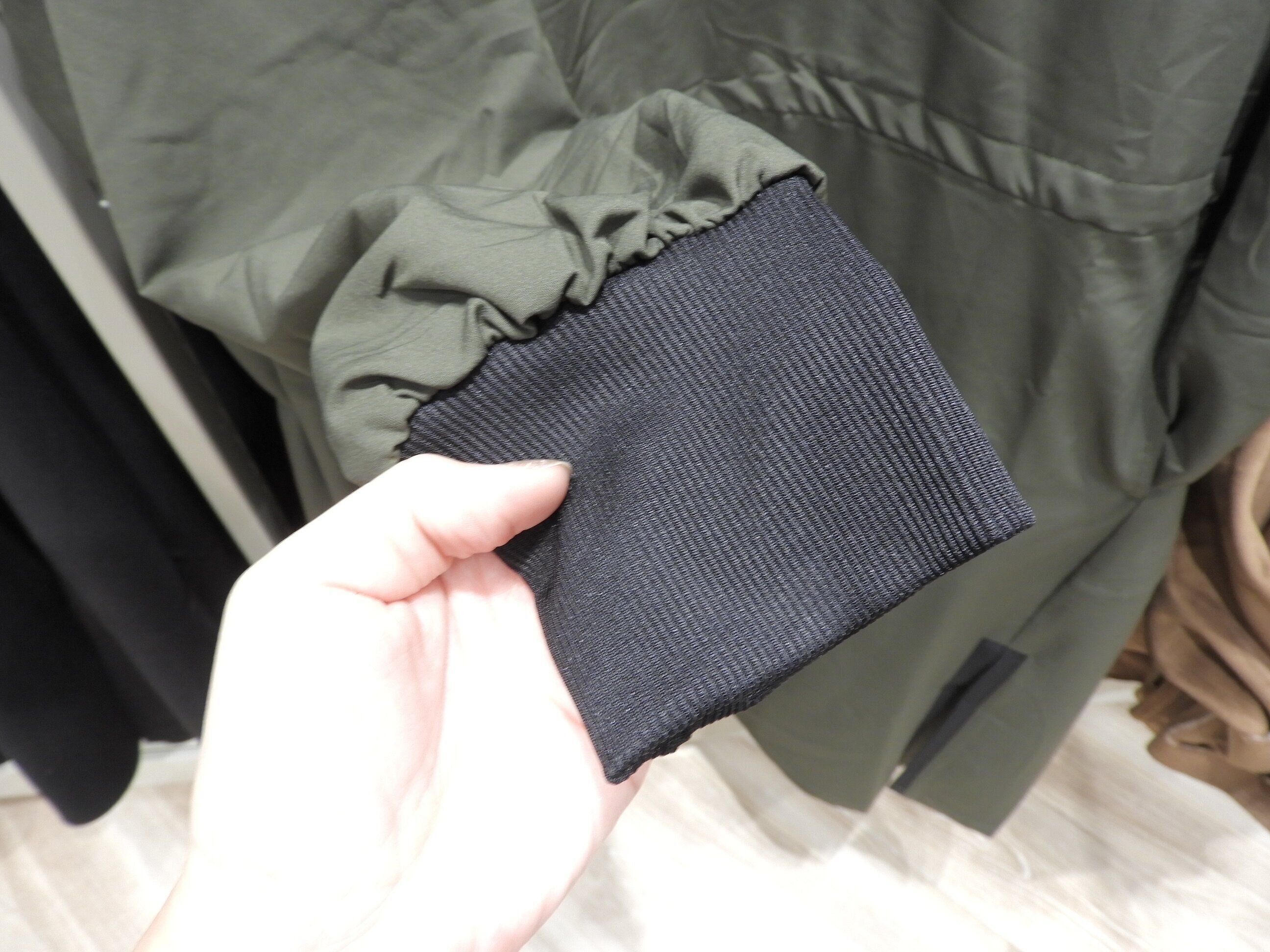 袖の部分のデザインもとってもおしゃれ。カラーはブラックとカーキの2色展開です。撥水加工がされていて汚れも落ちやすいのもうれしいポイント。しわになりにくいので旅行などにもおすすめです。