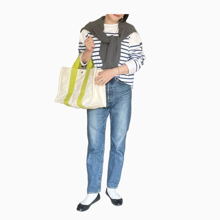 足元を変えれば、日常にもおしゃれ着としても幅広く着回しができる上に、体のラインも広いにくい素材だからこそ、40代にはぜひ取り入れて欲しい1枚です。