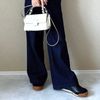 ユニクロの「ワイドトラウザージーンズ 商品番号:469819」、「ラウンドミニショルダーバッグ 商品番号:470040」UNIQLO:Cの「スウェードコンビネーションスニーカー 商品番号:471720」とコーディネートしてみました。カジュアルなスタイルにもしっかりマッチしてくれます。差し色に赤色のベルトをして、コーディネートに彩りを加えてもいいですね。