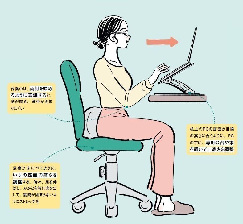 - 【PCを使う】目線を下げない座り方で、ポッコリおなかを防ぐ