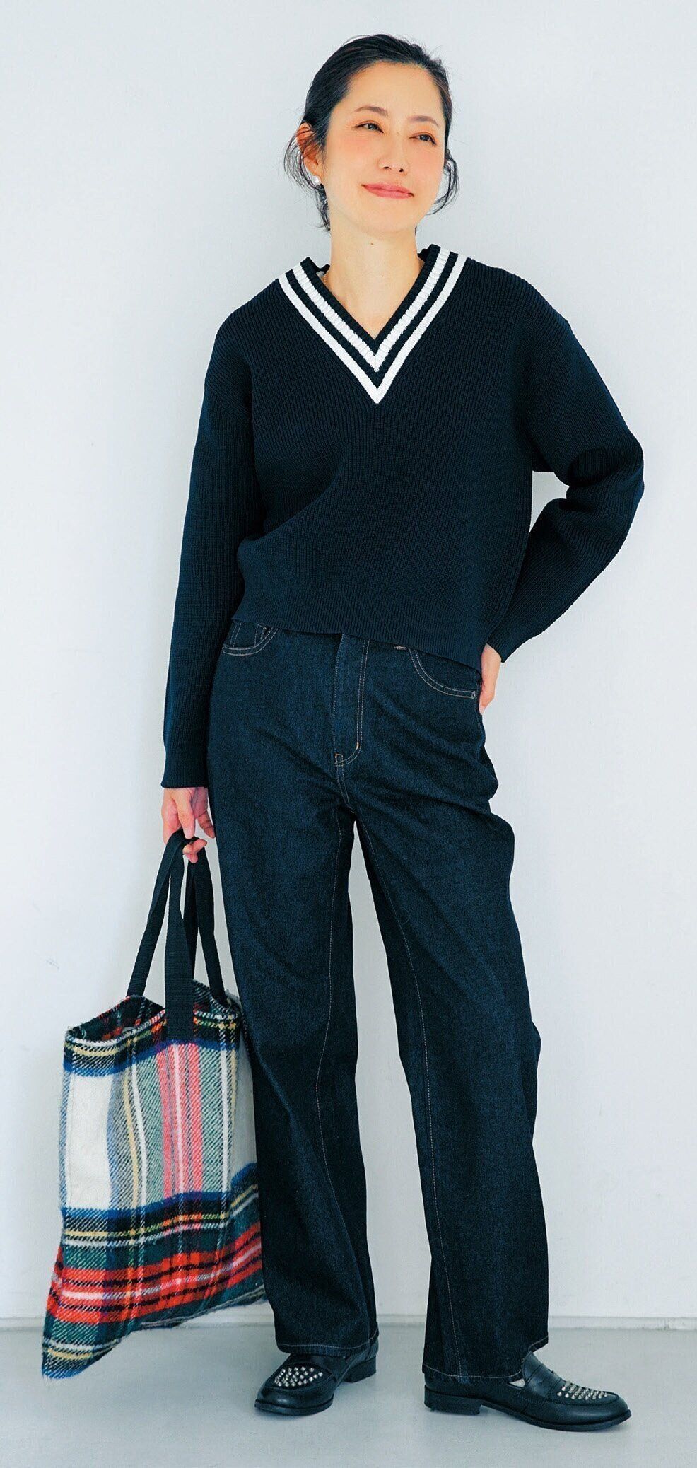 大人のジーンズ選びはなかなか難しいけれど、これは万人におすすめできる1本。色も形も絶妙できれいに着られます。