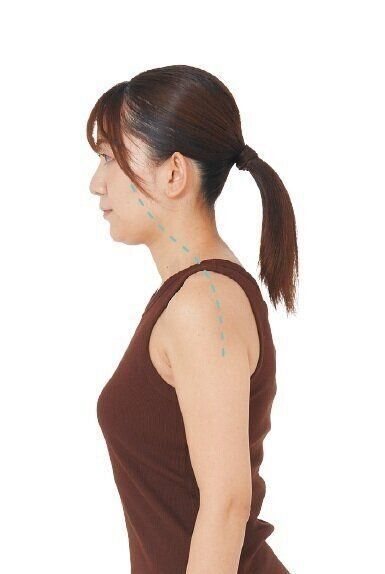 横から見たときに体に比べて顔が前に出ているタイプ。頸椎の傾きを正すことが大切。