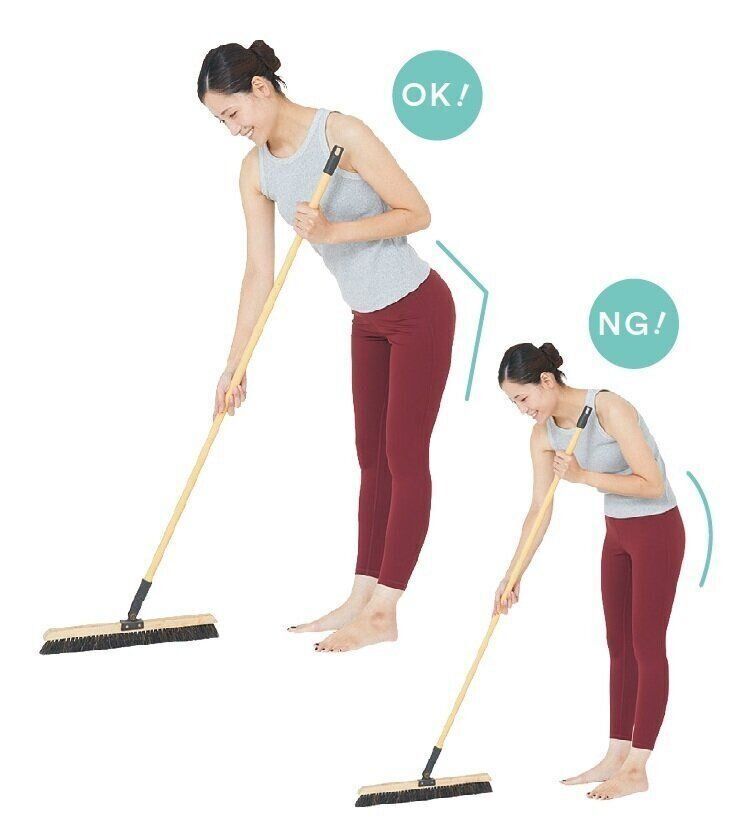 前かがみになりたいときは、腰を丸めるのではなく、脚の付け根の股関節を曲げ、背筋を伸ばしたまま上半身を前に傾けるようにしましょう。